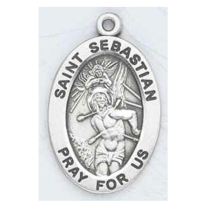 Sterling silver St. Sebastian medal. An 18 inch sterling silver curb chain is included with this Saint Sebastian medal. Available in 2 sizes.